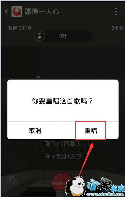 第一步:打开全民K歌软件,点击想唱的一首歌,点击K歌。再开始录歌之前点击重唱。