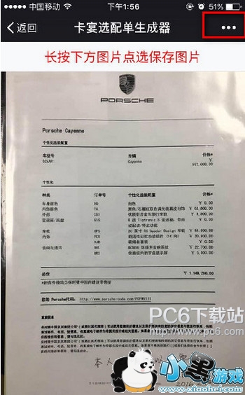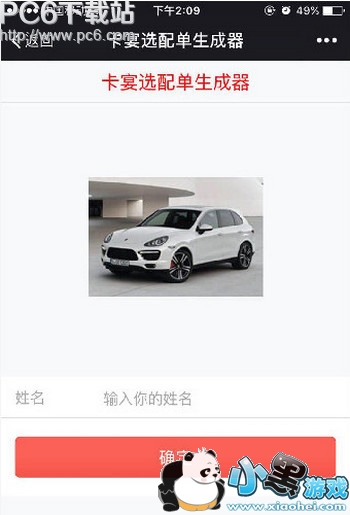 卡宴选配单生成器是什么?微信卡宴选配单生成器怎么玩?最近在微信朋友圈中大家是不是总是看到有朋友晒自己的卡宴选配单?机智如你一定发现什么猫腻在其中了,那可不是真的哦,是一款非常好玩的软件----卡宴选配单生成器制作出来的。你想不想也玩一下?晒一张自己的卡宴选配单,让PC6小编给大家讲解一下吧!