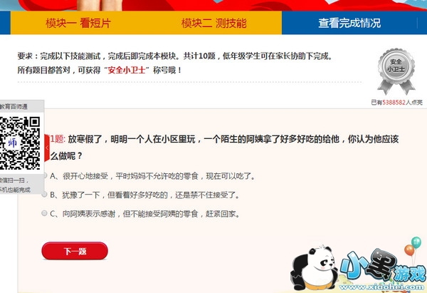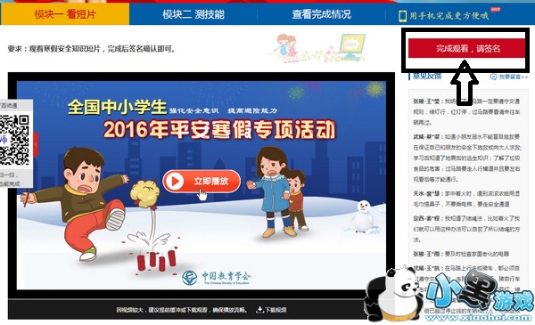 第三步:注册登录成功后,要完成两个模块,模块一:看短片,看完短片后记得签名;模块二:侧技能,完成答题