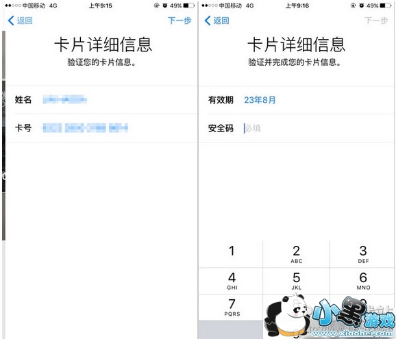 当Apple Pay读取完银行卡信息后,我们还要进一步完成信息验证,也就是填写银行卡的有效期和安全码。有效期安全码都可以在银行卡上面获取,有效期通常都印在银行卡的正面,而安全码则标示反面(用户签名处的后三位数字)。