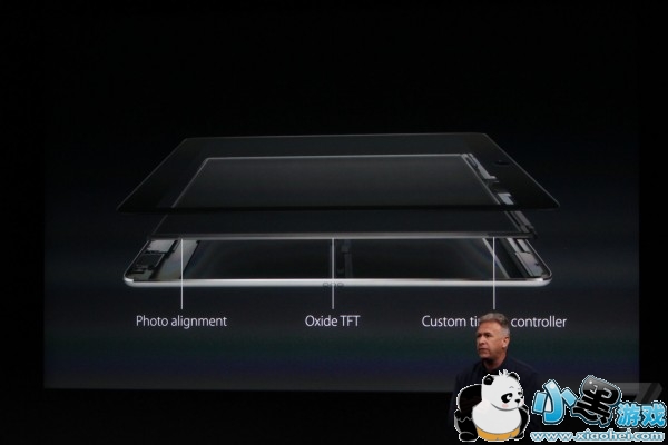 苹果高管 Schiller在发布会上介绍了新款iPad Pro屏幕,世界上亮度最高的笔记本,新款还要比iPad Air 2减少了40%的反射,技术层面的解释很枯燥,比如屏幕材质为“氧化物薄膜晶体管”(Oxide TFT)。