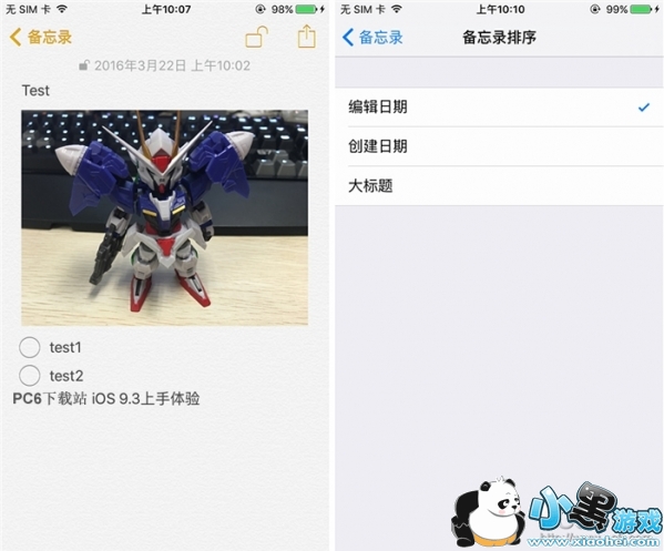 备忘录还加入了列表清单模式,单击底部的【对号】标志即可添加列表。此外还可以加入了可以根据编辑日期、创建日期、大标题排序的功能。