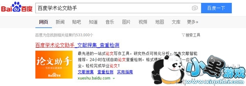 在百度首页搜索框中输入“百度学术论文助手”相关关键词,搜索结果如下图,点击进入: