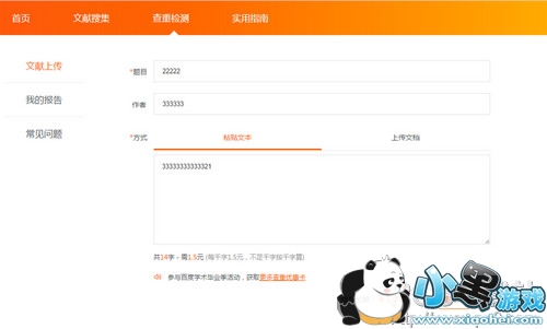 点击查重检测即可进入