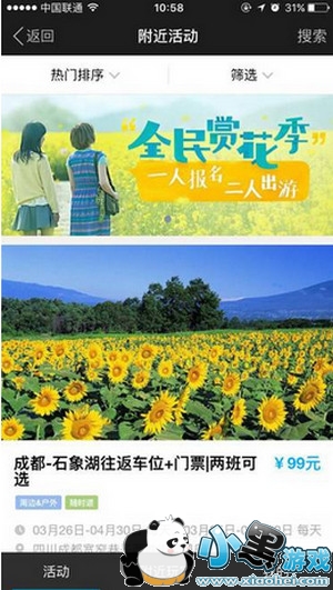 (1)通过“发现”-“附近活动”购买全民赏花季任意活动,购票成功后即可获得一次赠送免费门票的 机会;