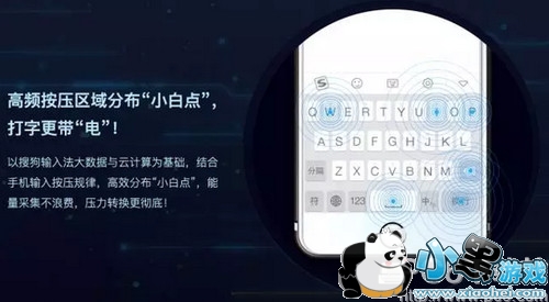 搜狗膜膜打手机充电膜通过高系数压电纳米材料采集来自手机按摩、按压等产生的能量。同时利用混合电力放大器,完成电力传输任务,内置的混合放大元件,将小压力转变成大电力。而且用户在使用搜狗输入法时,搜狗膜膜打的能量转换达到最大