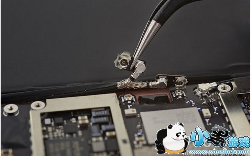 9、逻辑板旁边有新的天线互联板,连接器被胶水固定了。实在看不出这些互联板有什么作用,只能猜测或许是它们那平坦的表面能够给屏幕提供多一点空间。