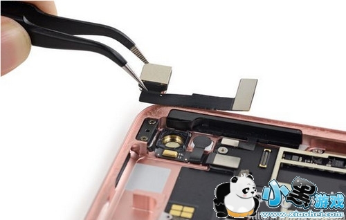 7、各种保护层和线路断连之后,我们先看看位于机身上部的扬声器系统。苹果不仅用胶水和螺丝钉把它固定得非常稳固。扬声器和逻辑板是通过弹簧触点连接的。