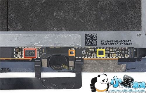 5、后盖拆开后,我们可以看到屏幕缆线在右下角,这是第一次看到苹果采用这样的布局方式。屏幕背部有很多衬垫泡沫,还有很多芯片: