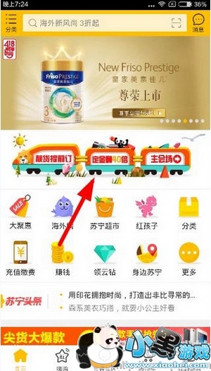 1、用户打开苏宁易购后,然后点击上方的横幅进入418主会场,如下图:
