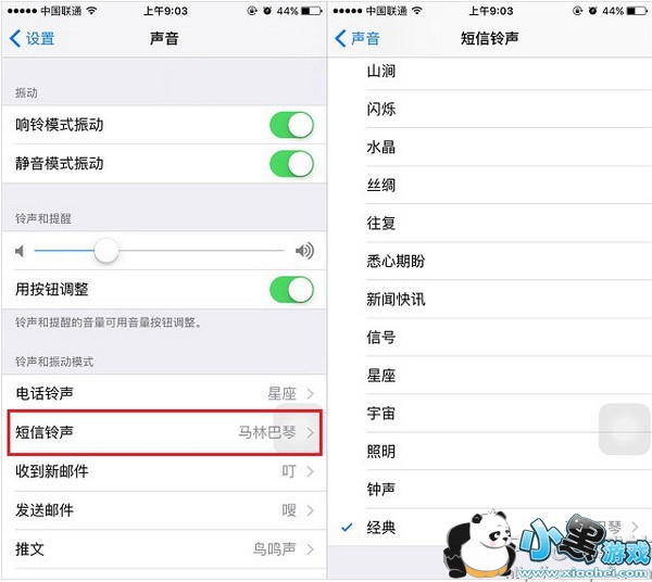 第二步:然后再找到,并进入 「短信铃声」-> 之后里面勾选上自己喜欢的 铃声 就可以了,如图。