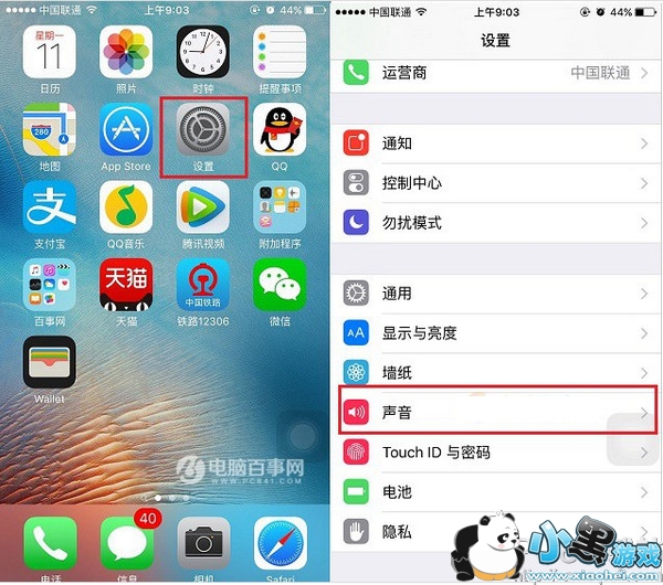 第一步:首先从iPhone SE 桌面依次点击进入 「设置」-> 「声音」,如图。