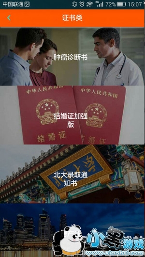 第二步:进入证书类后,找到北大录取通知书点击进入