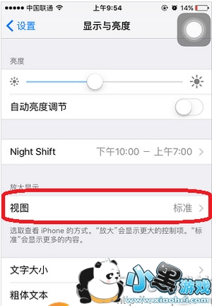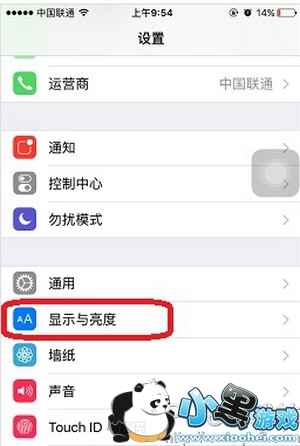 1.打开设置,下拉点击“显示与亮度”,如图: