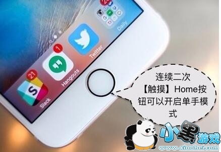 1.如下图所示,当我们用手指连续二次触摸【主屏Home】按钮时,便可以触发系统的单手操作模式。值得注意的是二次触摸 ,而并不是按下Home按钮。