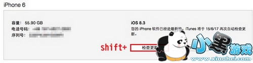 4、然后按住键盘上的 Shift(Option),同时鼠标点击 iTunes 界面的【检查更新】按钮,再选择对应版本的 iOS9.3.2 beta3 固件进行升级。