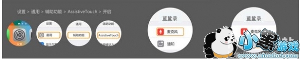 2. 确保开启手机的AssistiveTouch、蓝鲨录的麦克风、蓝鲨录的通知: