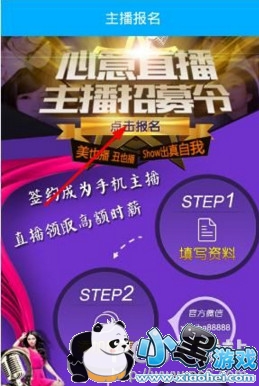 1、打开软件,在首页上方的滚条幅上,有着主播招募令,点击进去: