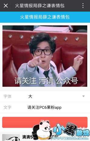 进入公众号,点击菜单,“装逼神器”→“薛之谦表情包”: