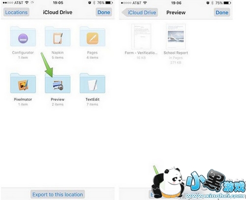 6. 这时候,界面就会跳转到iCloud Drive,我们可以选择将附件保存到事先创建的任何一个文件夹,选中该文件夹之后,点击界面底部的“导出到此位置”即可,如果只点击右上角的“完成”,是不会保存附件的。