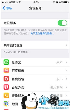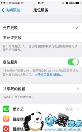 5.设置完成以后,我们再次打开iPhone上的“定位服务”选项,发现已经可以进行手动设置了。