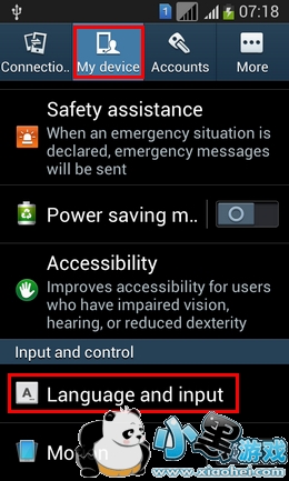 点击【My device】,选择【Language and input】。