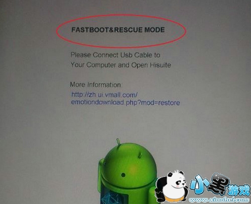 手机关机状态下,同时按音量下键与电源键开机,进入FASTBOOT&RESCUE MODE (急救模式或救砖模式,随你叫),手机连线电脑。别的情况下,如循环重启无法关机,先手机连线电脑,按住音量下,再长时间按住电源键,手机关机重启进入RESCUE MODE。