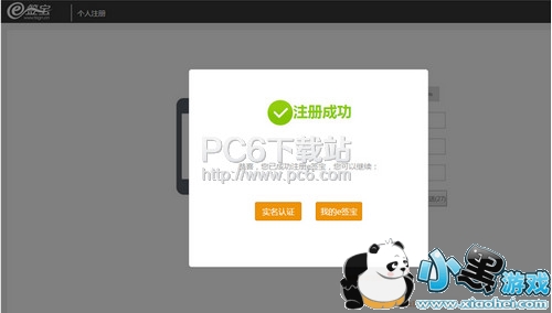 3、点击【下一步】成功后,即表示注册成功,您可以点击【实名认证】选择继续实名认证或者点击【我的e签宝】直接进入e签宝。