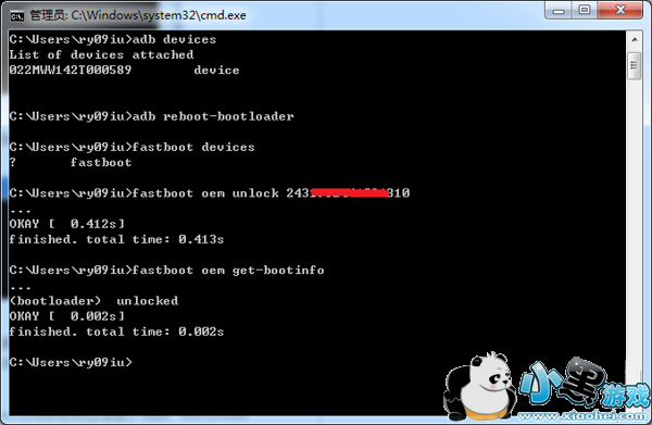 e. 我们可以查看下是否已经成功解锁,输入fastboot oem get-bootinfo,回车,将会看到如下输出结果,状态为unlocked 即为解锁成功