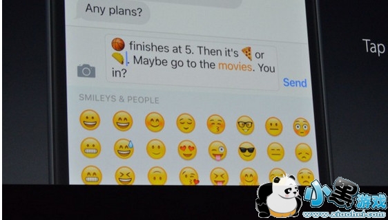 如此前所说,iOS10的信息应用增加了更大更有趣的emoji表情,在短信聊天中新增泡沫特效,能够自动识别文本中的表情相关字,点击一下即可替换成对应的表情。表情党的最爱。