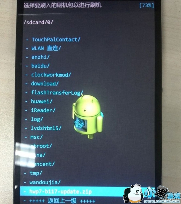 返回到主界面,选择 “刷入刷机包”,这时可以从内置卡(sdcard)或外置SD卡(external_sd)选择刷机包(电信版仅能选择从sdcard),这里特别提醒下:当选择从内置卡刷入时要进入"0" 文件夹选择