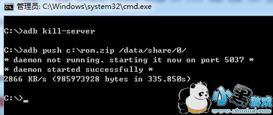 adb push c:/rom.zip /data/share/0/ (回车)