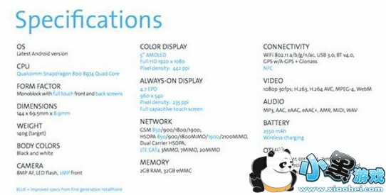 第二代则在今年2月发布并亮相于MWC,还是双屏幕,不过尺寸从4.7英寸扩展到5英寸,2.3GHz的骁龙800四核处理器,2GB RAM+32GB ROM,配有200万像素+800万像素前后镜头,并运行Android 4.4系统,支持4G LTE网络,拥有蓝牙、Wi-Fi、NFC和无线充电功能。LCD电容触摸屏也升级为AMOLED屏,分辨率提高到1920×1080像素。比第一代更进步的是,Yota Phone2的用户将能够直接对电子纸显示屏(分辨率提升为960×540)上的内容进行操作,包括了回信息、电话和通知等,甚至还能用它玩国际象棋、九宫格等游戏。Yota Phone的电子纸显示屏的还能充当显示用户定制数字内容的仪表盘,同时还加入了时下热门的可穿戴设备信息同步功能。