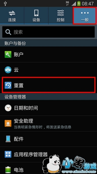 在使用手机一段时间后,小伙伴们可能都会觉得手机不如一开始那么流畅了,速度也不那么给力了,那么这时就需要恢复出厂设置,来清理一下系统的垃圾和缓存。不过有小伙伴们表示,找不到三星Galaxy Note3的恢复出厂设置。其实,三星的恢复出厂设置是在【重置手机】里面的。