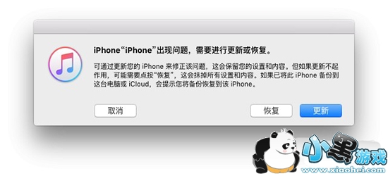 3. 此时 iTunes 会检测到你有一台设备正处于恢复模式,并询问你是否要恢复或更新设备