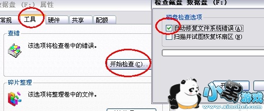 修复后,右键SD卡属性-工具-开始检查-把“自动修复文件系统错误”和扫描并尝试恢复坏扇区”两项都打上“√”