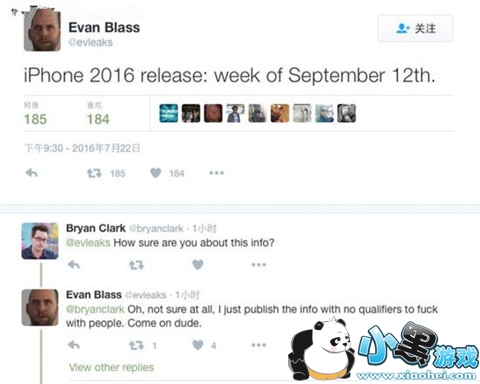 不过在爆料大神指出这一特性后,有网友随后询问他这一消息是否可靠,而他则有趣的表示这信息并不确定,只是随便猜测的。不过空穴来风,显然未必无因,我们觉得还是有一定可靠性的。另外按照苹果的惯例,在8月中下旬就会正式给出2016年苹果秋季发布会的邀请函,届时就会公布正式的时间,大家不妨拭目以待!
