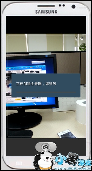 通过移动手机将画面全部拍摄后,屏幕会提示“正在创建全景图,请稍等”。