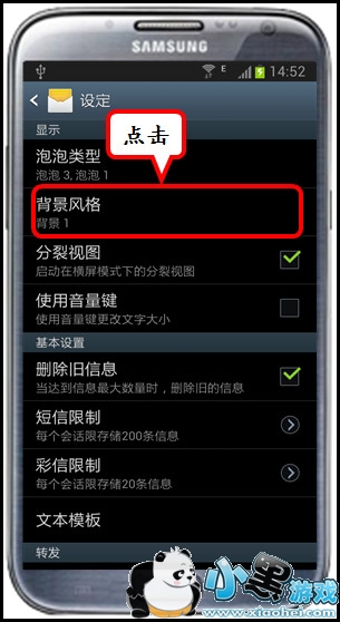 三星手机采用Android智能操作系统,支持短信背景风格的更换。如果想要给手机信息更换背景风格,请按照以下方式进行操作: