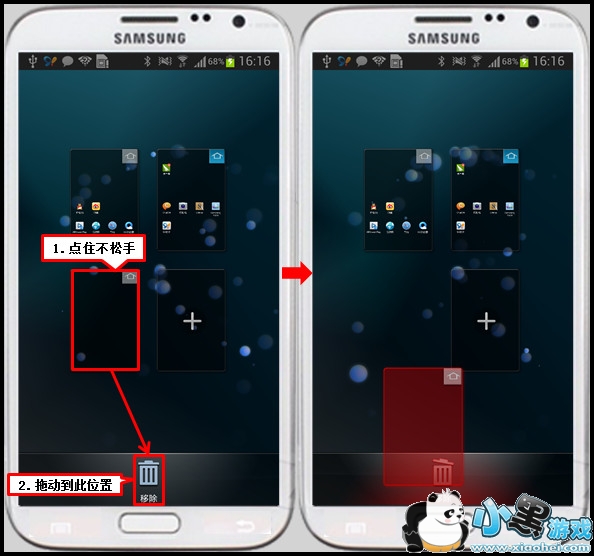 三星手机主屏页面最多可设置7个,如果想删除多余的主屏页面,请按以下步骤操作(以Galaxy Note2为例):