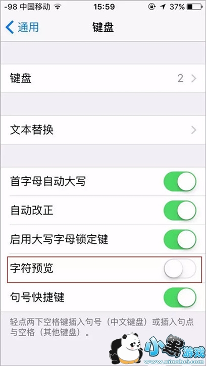 而且经过一段时间,我们对iOS键盘熟悉了之后,其实不太需要这个预览功能,再加上有各种近似的纠错功能,我们可以关掉这个预览开关,增加安全性!