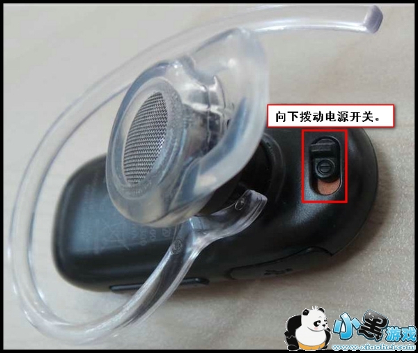 1.拨动蓝牙耳机的电源开关。(蓝牙耳机型号不同,具体蓝牙耳机开启方式请参考蓝牙耳机说明书操作,下面以三星蓝牙耳机“HM3300”为例。)