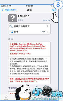 若要安装PP助手到手机上,可以通过Cydia添加PP源:apt.25pp.com或者连接PP助手电脑版安装PP助手(越狱版)。