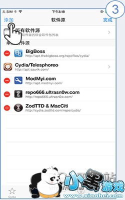 1、 打开【cydia】->点击下方的【软件源】