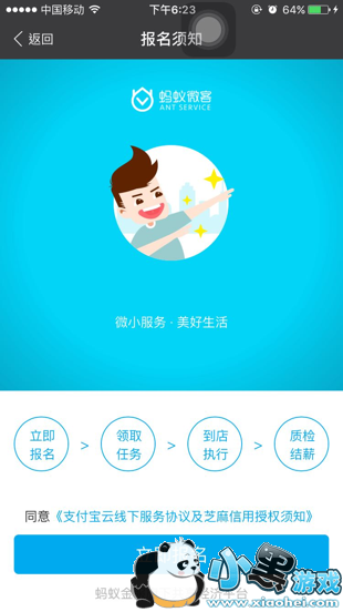 蚂蚁微客是支付宝推出的一款全新的赚钱app,在蚂蚁微客中小伙伴可以快速完成任务并赚钱丰厚的酬劳,蚂蚁微客玩法还是非常的简单的,只需要注册支付宝账号,登录蚂蚁微客即可,任务主要是巡店,检测店面十分正确,支付宝是否能使用等等。想要赚钱的小伙伴快来下载探索吧!
