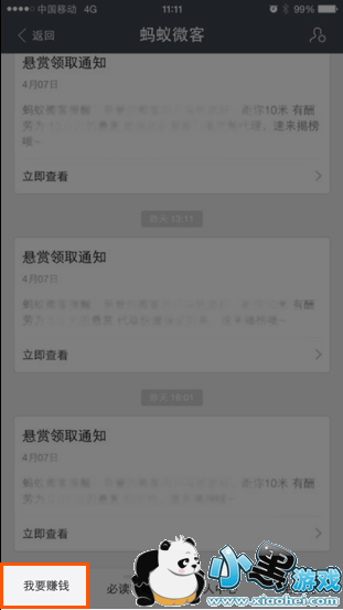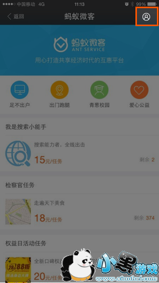 3、进入服务窗,点击我要赚钱,进入蚂蚁微客