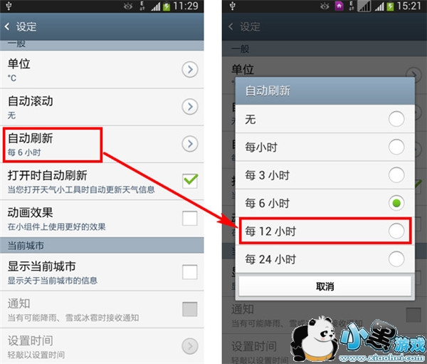 3. 点击【自动刷新】,然后根据您所需的刷新时间选择即可。(这里以“每12小时”为例。)
