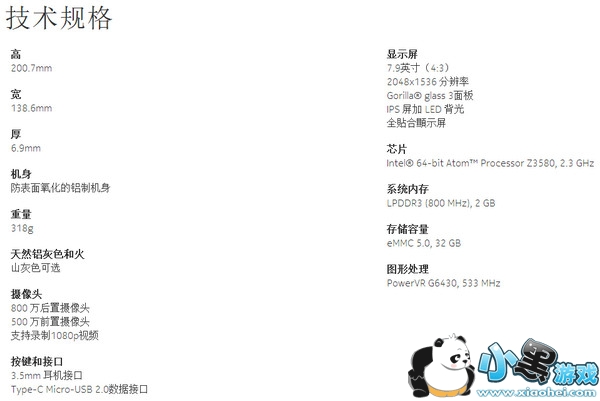 答:Nokia N1屏幕尺寸为7.9英寸(分辨率2048*1563),搭载2.3GHz四核英特尔64位Atom Z3580处理器,GPU为PowerVR G6430。存储方面,配备2GB运行内存(RAM)以及32GB机身存储空间(ROM)。前置500万+后置800万像素双摄像头,电池容量为5300mAh。