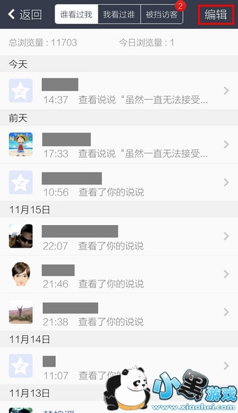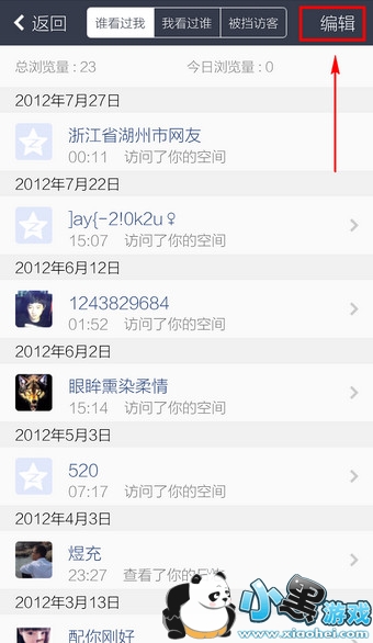 4.这里便是空间访问记录,点击右上角的【编辑】