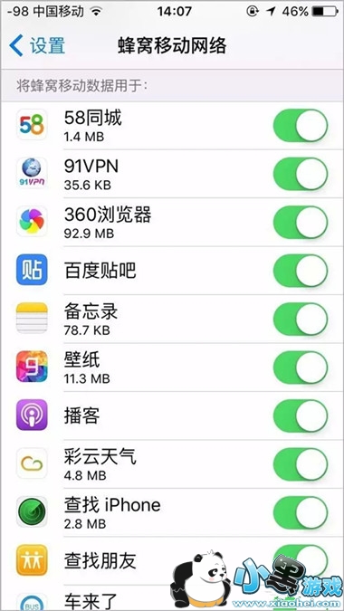 直接设置哪个App能单独用流量!比如流量大而又不常用的游戏,可以让它只在Wi-Fi下运行。而常用的应用像微信,一天不用浑身难受的,就让它继续用流量吧~